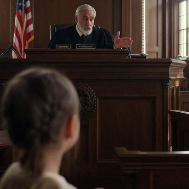 En una sala de tribunales, la pequeña Sofía estaba de pie frente al juez.